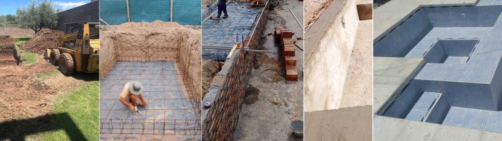 Una vez definido el lugar, se procede al replanteo y excavación del pozo, con maquinaria especial o de forma manual según el espacio disponible. Aquí entra en juego la precisión: respetar medidas, niveles y prever pendientes. Luego se realiza la base estructural del suelo y la colocación de una losa de hormigón.